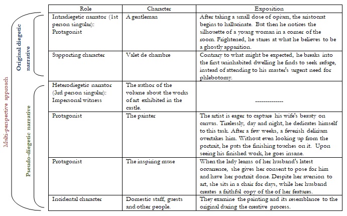 Thus, “The Oval Portrait” is told by two narrators, whose identities are as follows: Firstly, a man, who speaks in the 1st person singular to the reader, portraying himself as the protagonist. Secondly, a 3ʳᵈ person singular observer that writes a report on some tragic events. Because of its limited participation in the plot, the latter gets labeled as an “impersonal witness”. However, given its language, it should be referred to as a “personal witness”, since it expresses a sense of connection to the story’s characters.